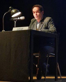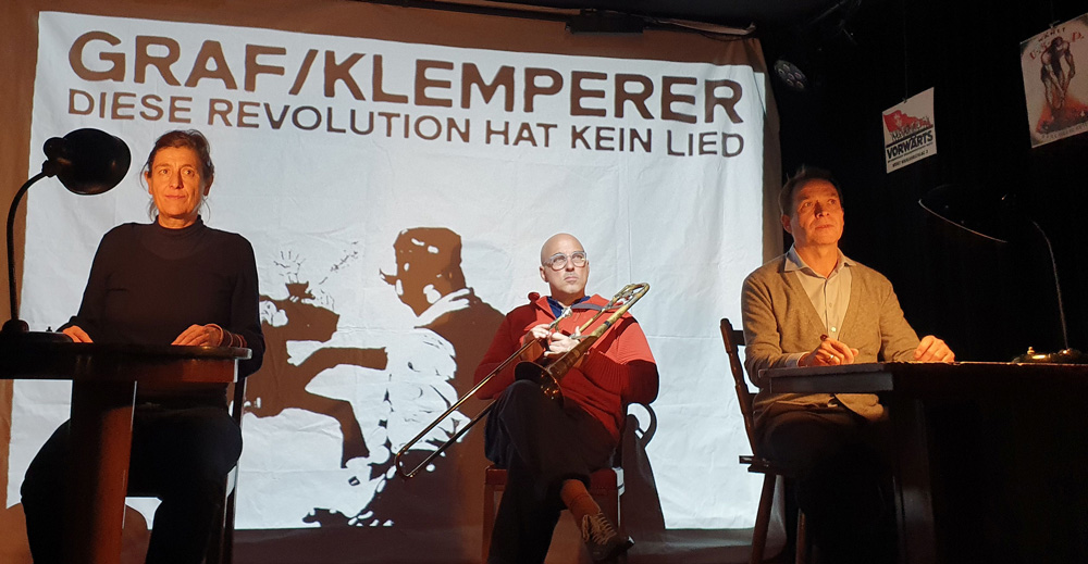 Und genau auf diese Zeit wollen wir mit unseren beiden „Protagonisten“ Oskar-Maria Graf und Victor Klemperer zurückblicken. Obwohl die beiden Antipoden unterschiedlicher kaum sein könnten, haben sie doch gar nicht so selten Ähnliches wahrgenommen, das dann aber sprachlich doch sehr unterschiedlich formuliert: so oszilliert das Stück zwischen textlich elegant (Klemperer) und sprachlich „brachial“ (Graf).